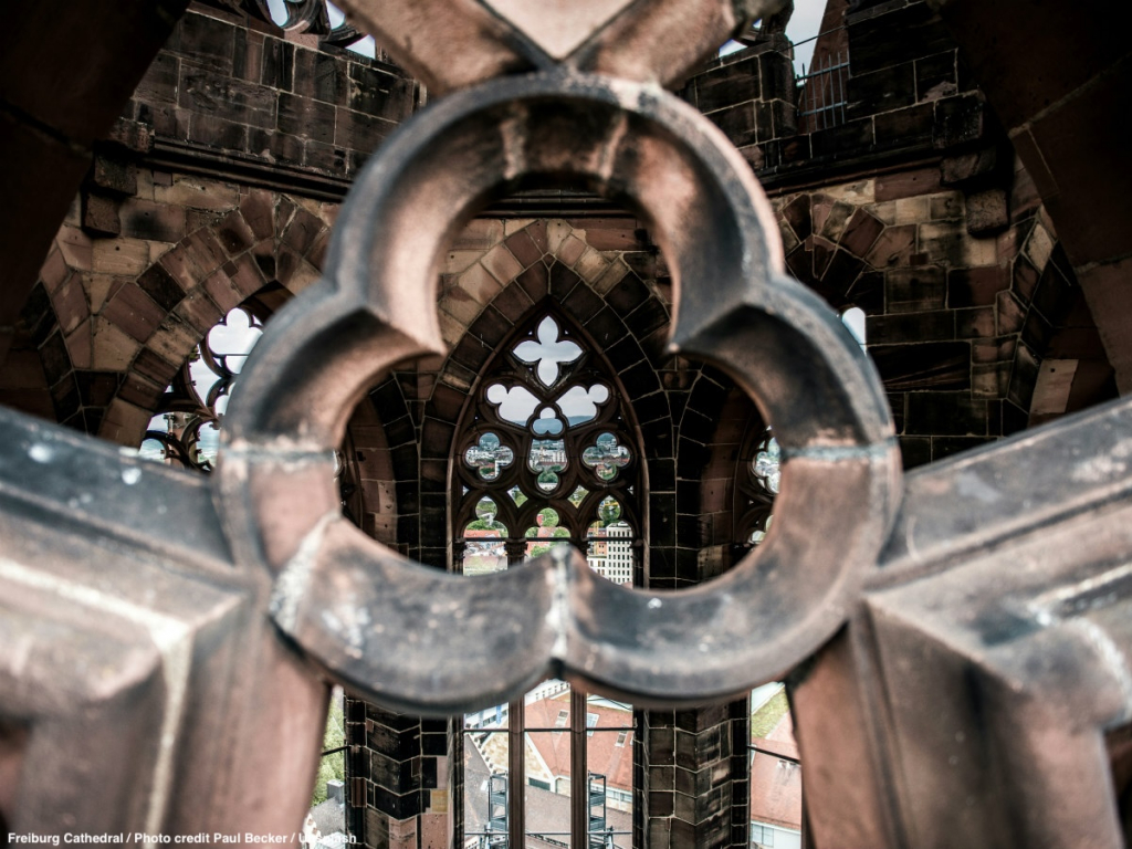 Inside the ancient stonemason workshop of Freiburg Cathedral, Germany, founded in the Middle Ages and still sustained by its citizens